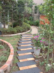 また、ご主人のご要望の玄関アプローチが狭く急な廻り階段になっておりリフォームガーデンを施工させて頂きました。
